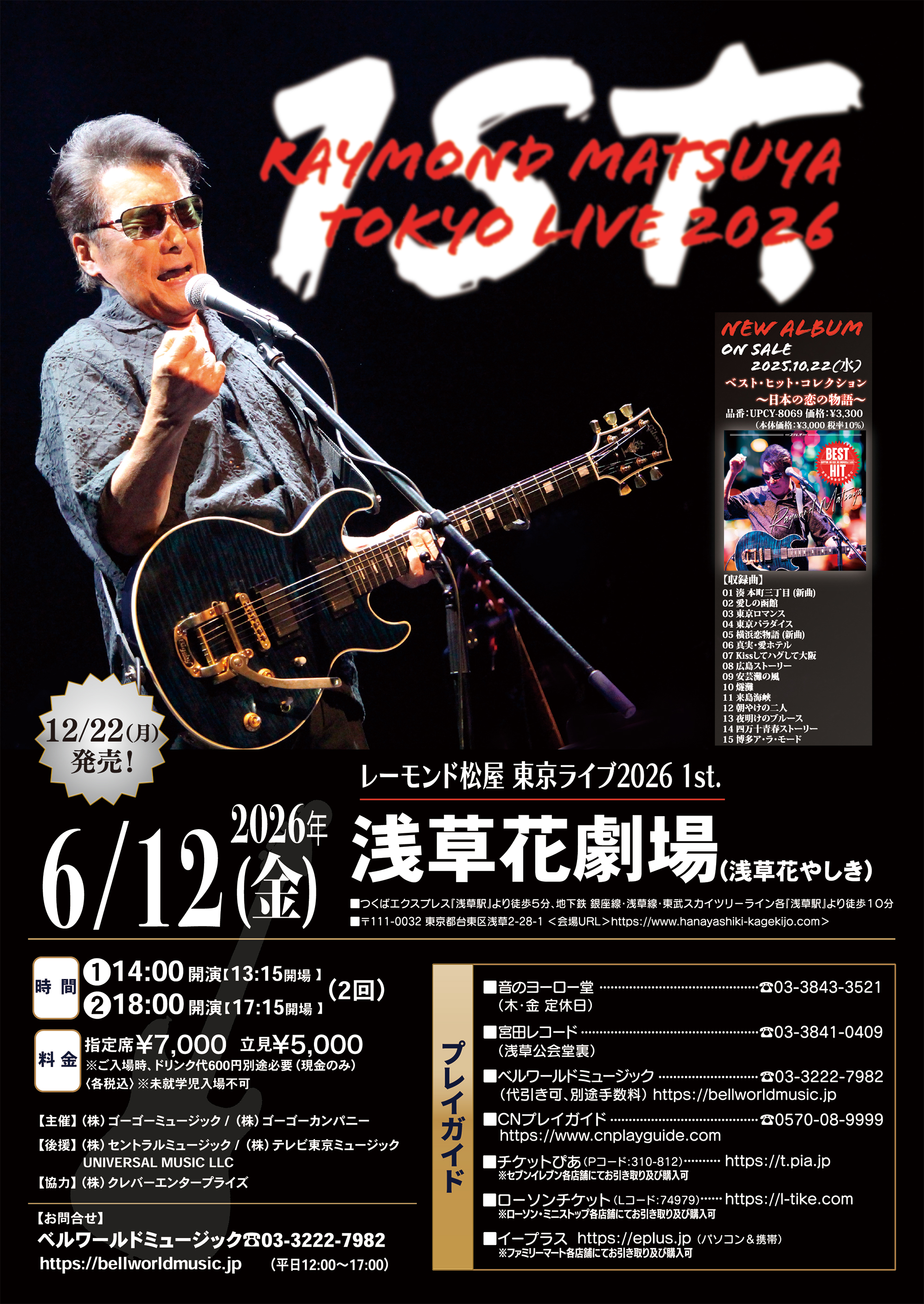 【お問合せ】(株)ベルワールドミュージック TEL :03-3222-7982(平日12:00~17:00)